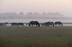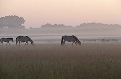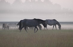 Nach der Mittagspause folgt der praktische Teil des Seminars, der einen besonderen Höhepunkt darstellt: der Besuch der Wildpferdeherde im Merfelder Bruch bei Dülmen. Diese Herde ist in Deutschland einzigartig – sie lebt seit vielen Jahrzehnten nahezu unbeeinflusst vom Menschen in einem weitläufigen, geschützten Gebiet. Die Pferde leben in festen Sozialstrukturen, wählen ihre Bindungen und Rangordnungen selbst und zeigen ein natürliches, unverfälschtes Verhalten, das in dieser Form bei domestizierten Pferden nur noch selten zu beobachten ist.